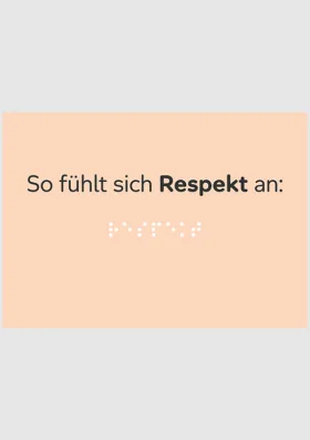 Karte in der Farbe orange mit dem Begriff "Respekt" in Braille-Schrift.